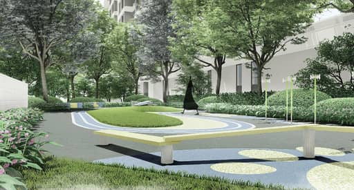 为让栖居者有更惬意舒适的宅间活动空间,项目环区设计一条约700米的环形跑道(私享乐活环)串联了四大功能模块,分别为景观会客功能模块、老幼活动功能模块、健康功能模块、宠物活动模块。