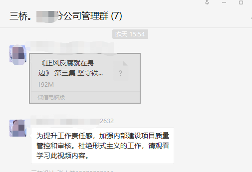 我院全体员工完成学习以后,也立即将视频发送到分公司群里,督促各分公司进行学习,坚决杜绝这种事情发生!